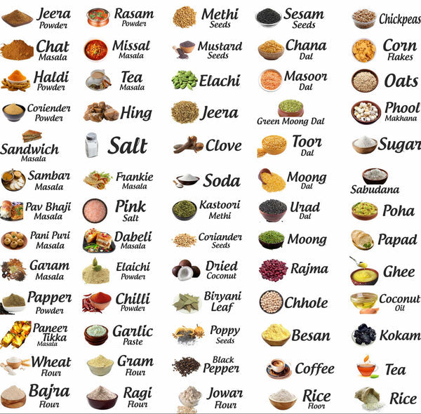 Everything from Masoor Dal to Haldi – no writing, no mess.