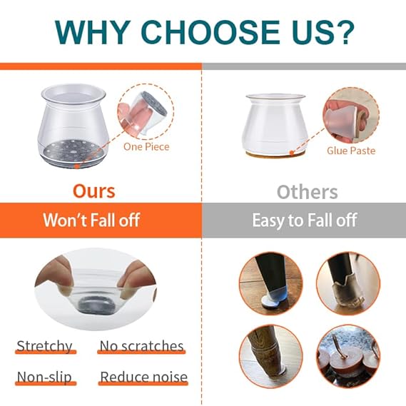 - Perfect method to solve the problems. The elastic tension of silicone makes these covers suitable for various shapes of furniture legs!